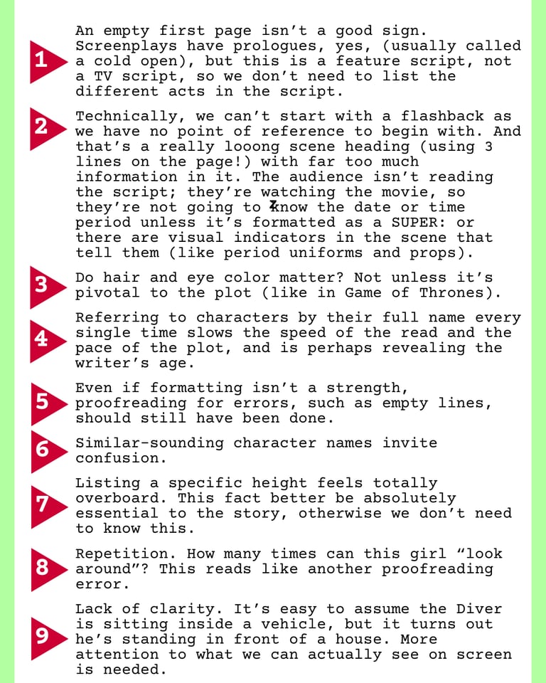 If you’d like Instagram line notes on your script, send it in PDF form to scriptreaderscheatsheet@gmail.com. There’s no guarantee that your script will be used, as I only pick ones with something worth talking about, and by sending your script in, you’re giving express permission for excerpts to be posted publicly. The writer's name will be kept private unless stated otherwise by the writer themselves.
