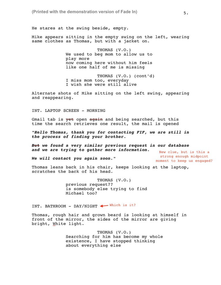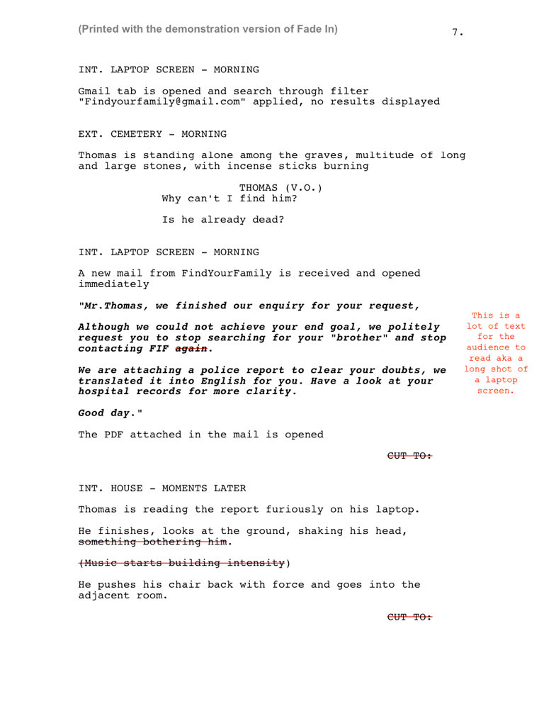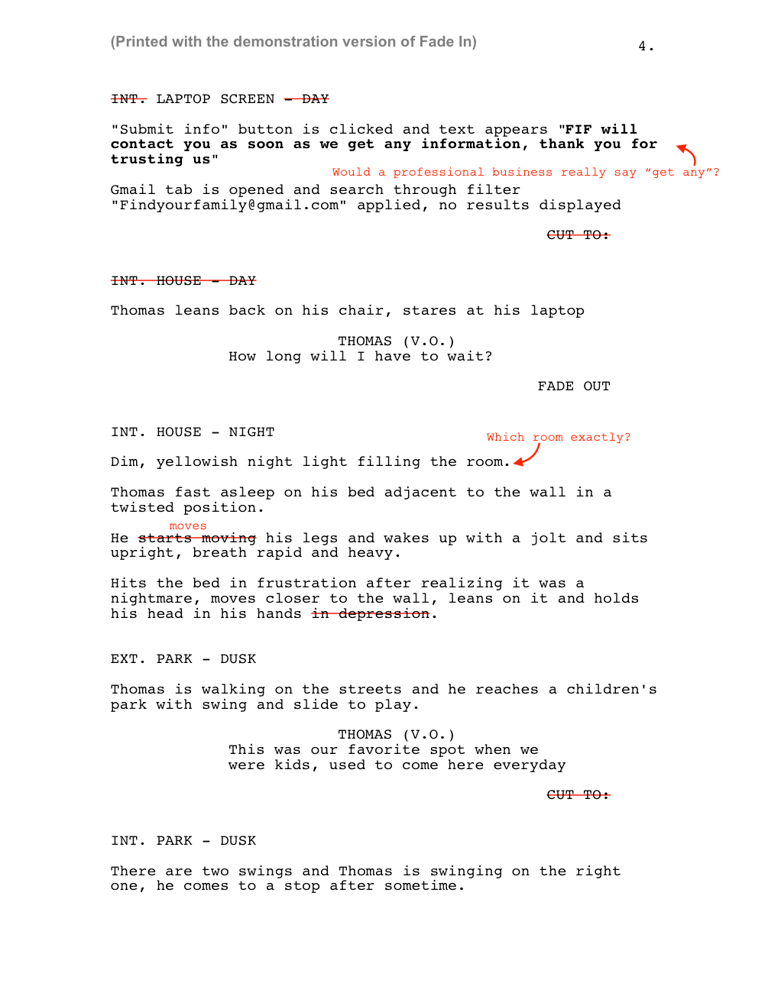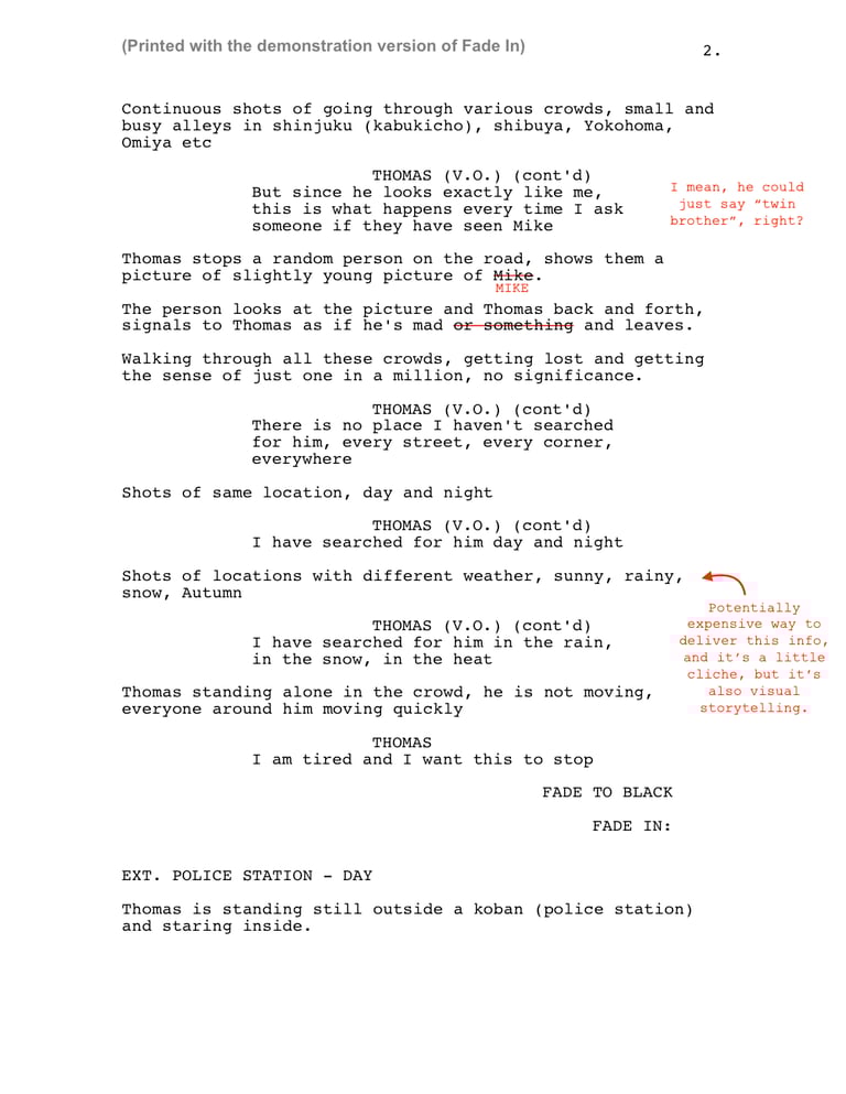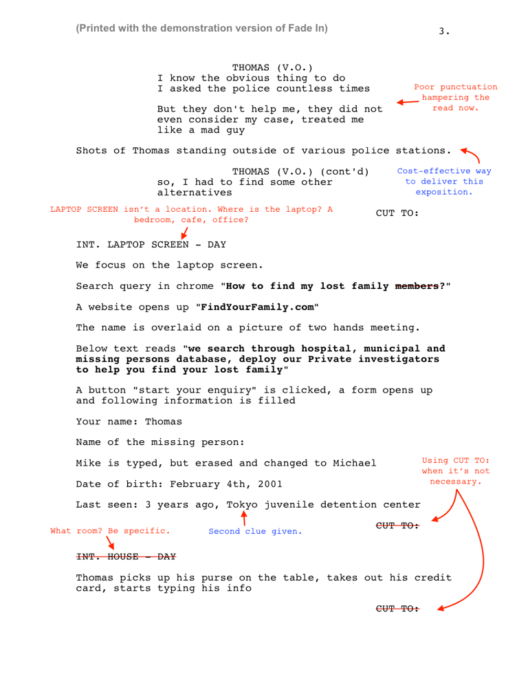 If you’d like Instagram line notes on your script, send it in PDF form to scriptreaderscheatsheet@gmail.com. There’s no guarantee that your script will be used, as I only pick ones with something worth talking about, and by sending your script in, you’re giving express permission for excerpts to be posted publicly. The writer's name will be kept private unless stated otherwise by the writer themselves.