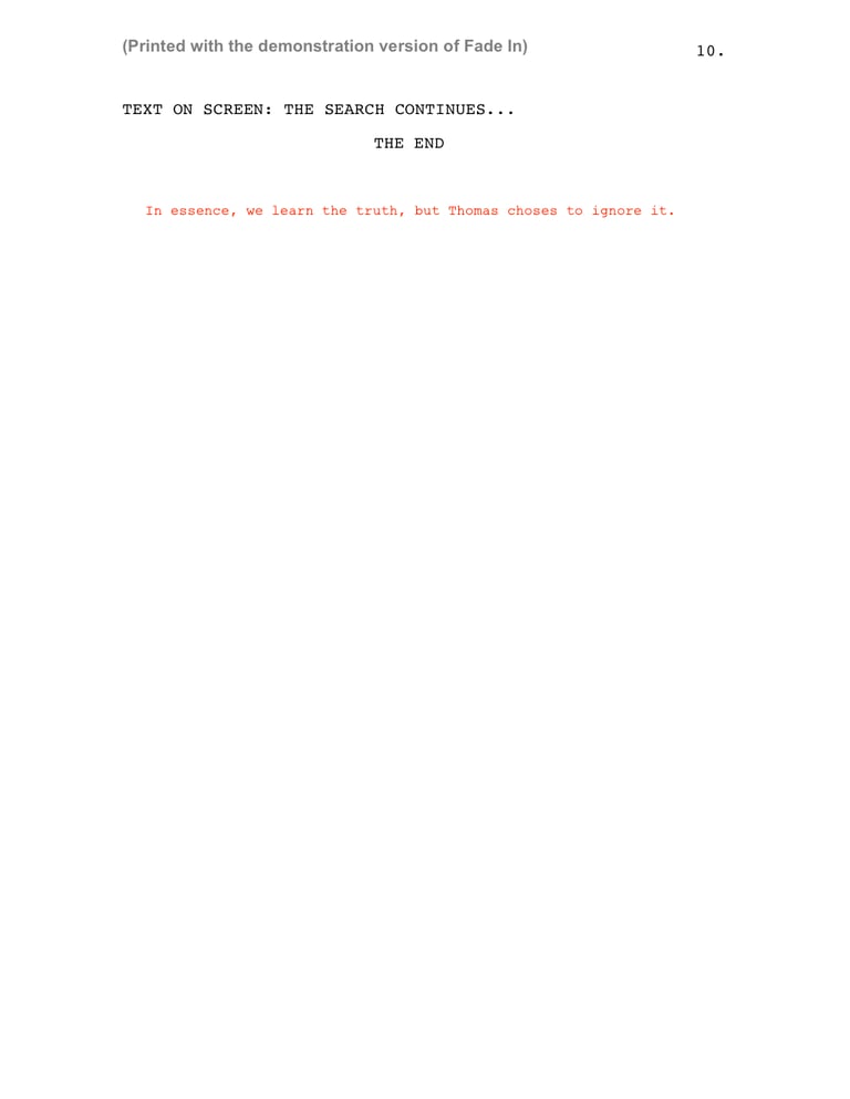 Returning to the original status quo at the end brings the plot full circle. We’re left wondering how Thomas is financing this pointless hunt while he consciously chooses to use the search to give his life purpose. Ultimately, Thomas is left feeling more satisfied than the audience is, but there are no rules to say that’s not allowed.